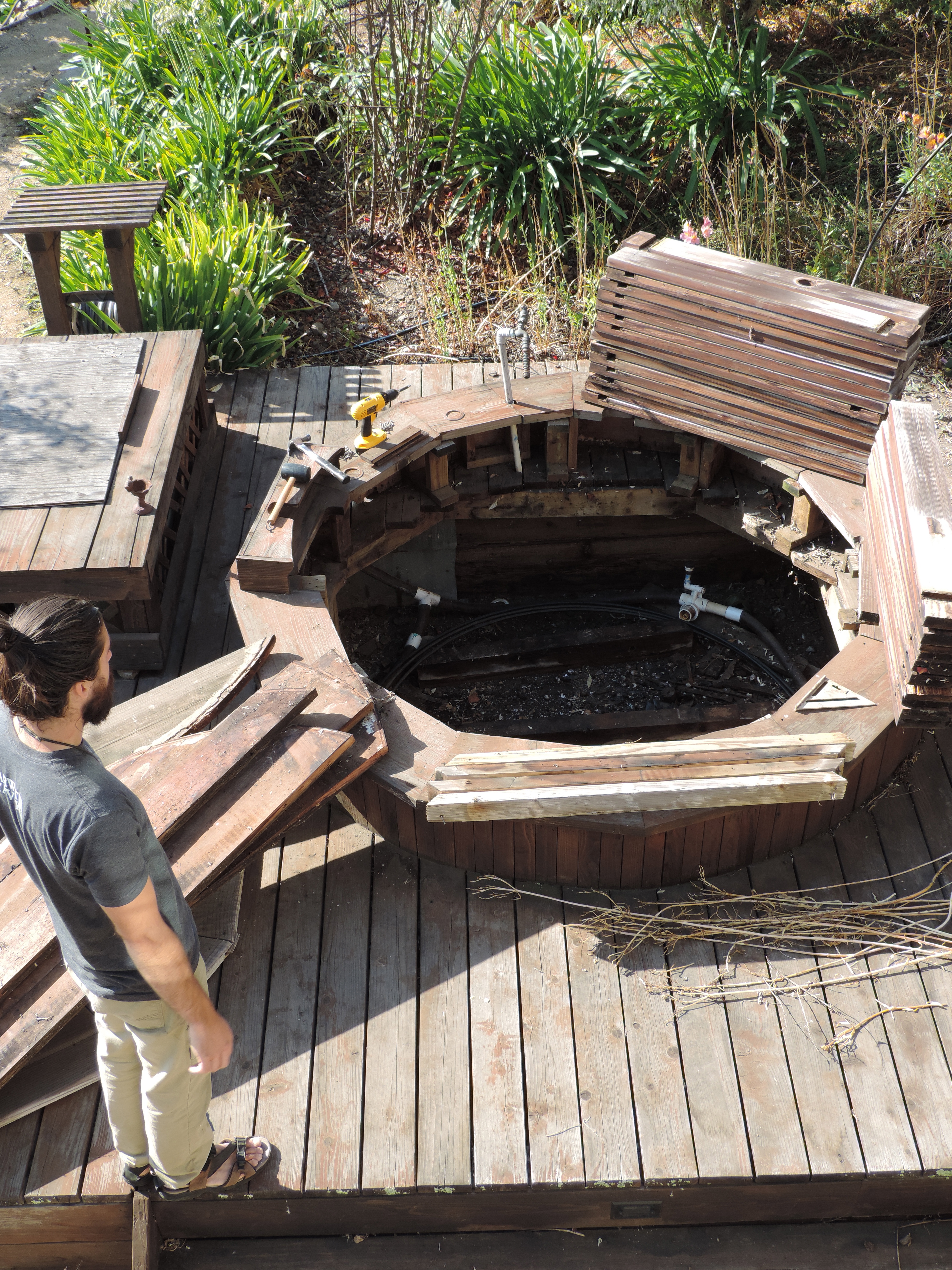Our trip to California to visit my family was so great. We both love just climbing into the car and driving. I really miss my family sometimes and always love getting a wonderful reminder of how awesome they are. We went wine tasting, cooked some amazing meals, and Garrett even managed to find himself a project while we were there! My mom had offered, if Garrett wanted to disassemble their old wooden hot tub he could have the lumber. He took apart the old girl and repaired their deck in a day. He came to discover it is old growth Redwood, (can’t buy that stuff anymore) really tight grain and in awesome shape. (except for the ends) I’ll have to put up some pictures once we plane a few pieces!